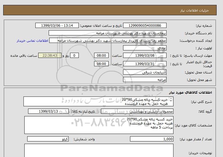 نام دستگاه خریدار:بیمارستان شهید دکتر بهشتی شهرستان مراغه