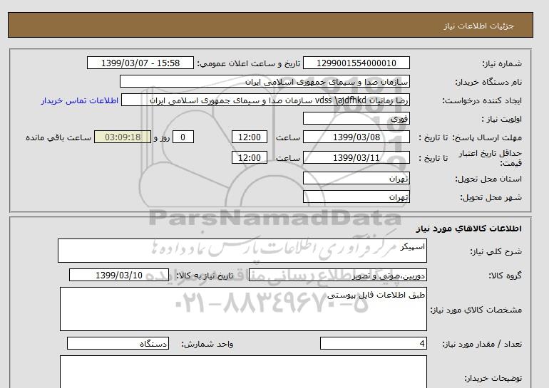 نام دستگاه خریدار:سازمان صدا و سیمای جمهوری اسلامی ایران