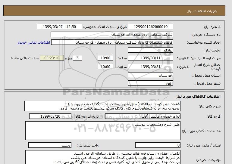 نام دستگاه خریدار:شرکت سهامی برق منطقه ای خوزستان