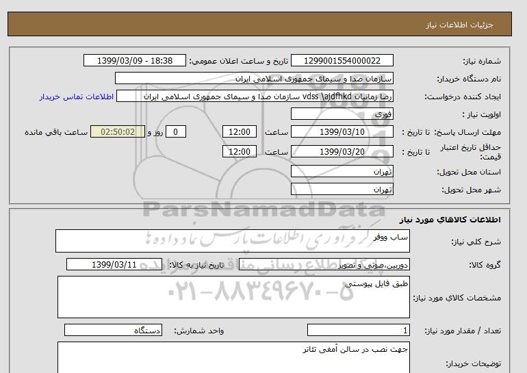 نام دستگاه خریدار:سازمان صدا و سیمای جمهوری اسلامی ایران