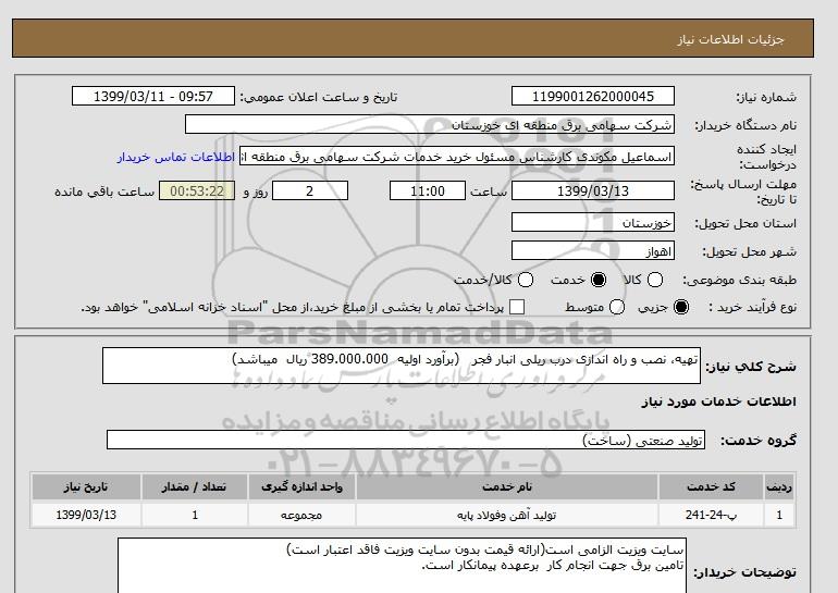 نام دستگاه خریدار:شرکت سهامی برق منطقه ای خوزستان