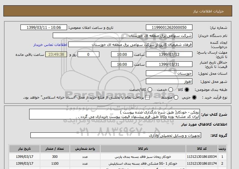 نام دستگاه خریدار:شرکت سهامی برق منطقه ای خوزستان
