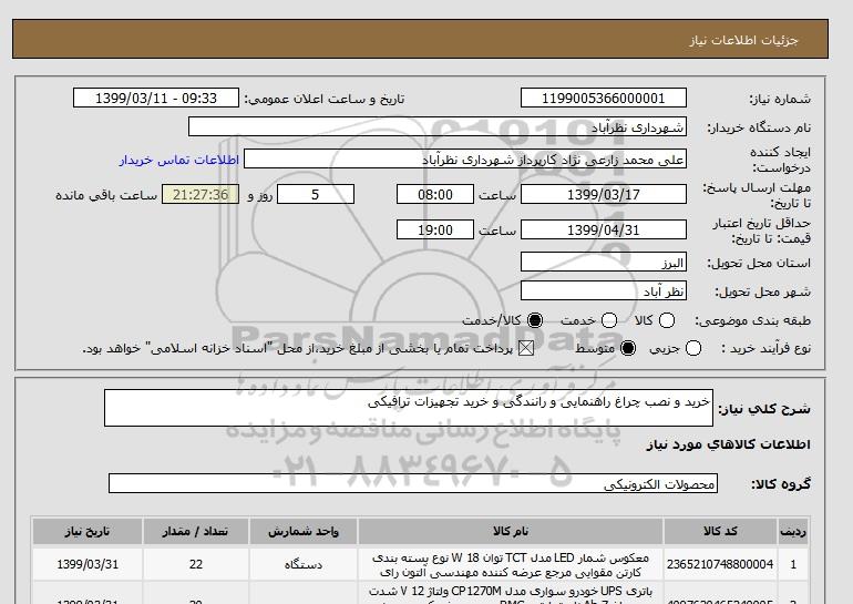 شرح کلی نیاز: خرید و نصب چراغ راهنمایی و رانندگی و خرید تجهیزات ترافیکی