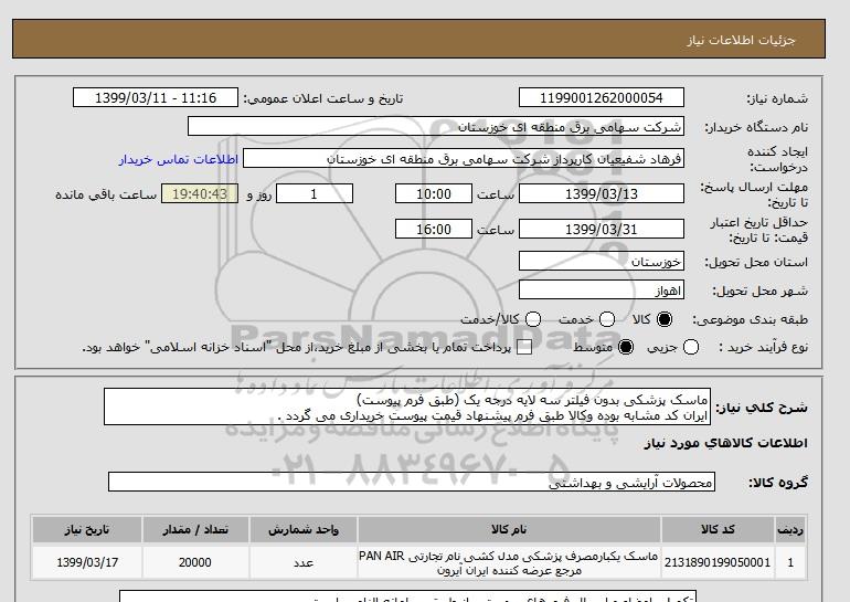 نام دستگاه خریدار:شرکت سهامی برق منطقه ای خوزستان