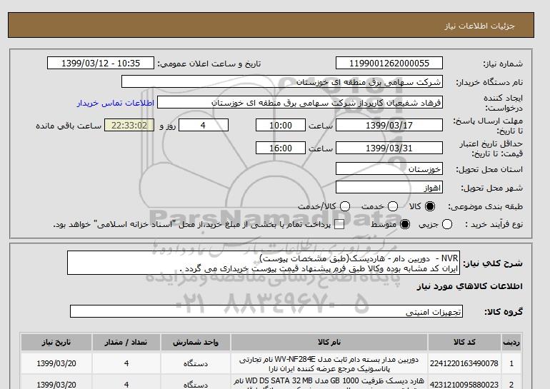 نام دستگاه خریدار:شرکت سهامی برق منطقه ای خوزستان