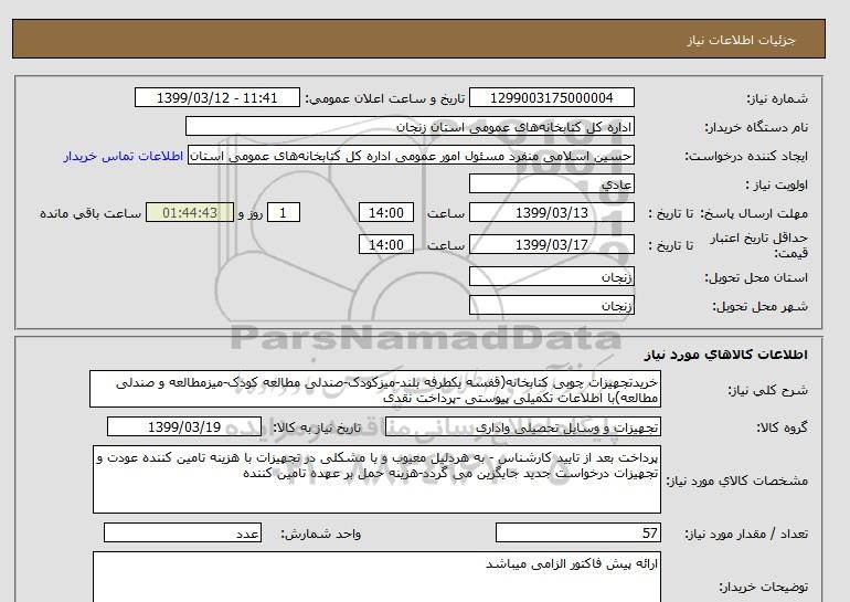 نام دستگاه خریدار:اداره کل کتابخانه های عمومی استان زنجان