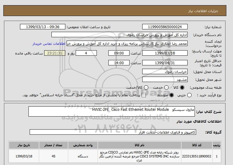 نام دستگاه خریدار:اداره کل آموزش و پرورش خراسان رضوی