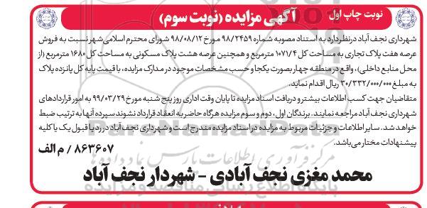 مزایده فروش عرصه هفت پلاک تجاری 1071.4 مترمربع نوبت سوم چاپ اول