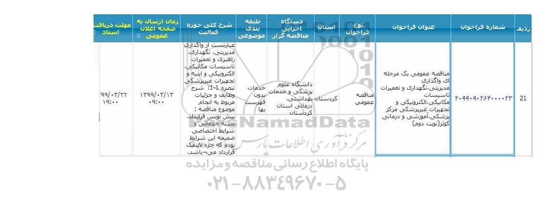 نوع فراخوان : مناقصه عمومی