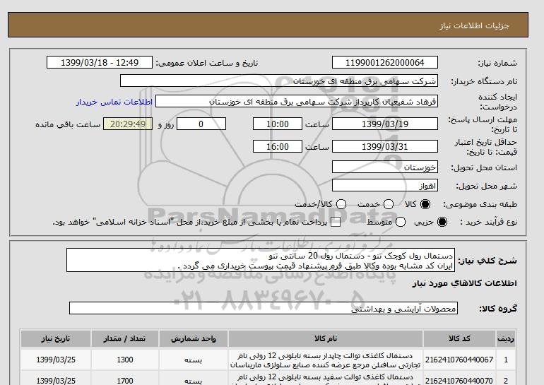 شرح کلی نیاز: دستمال رول کوچک تنو - دستمال رول 20 سانتی تنو