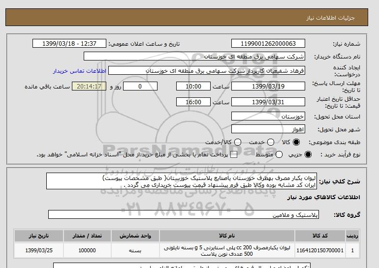 نام دستگاه خریدار:شرکت سهامی برق منطقه ای خوزستان