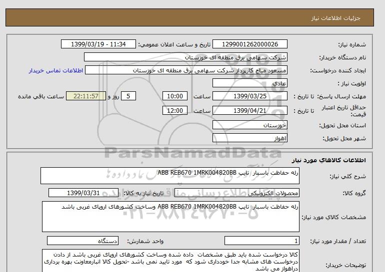 نام دستگاه خریدار:شرکت سهامی برق منطقه ای خوزستان