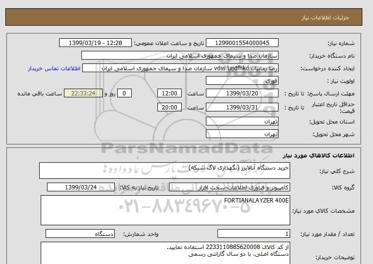 نام دستگاه خریدار:سازمان صدا و سیمای جمهوری اسلامی ایران