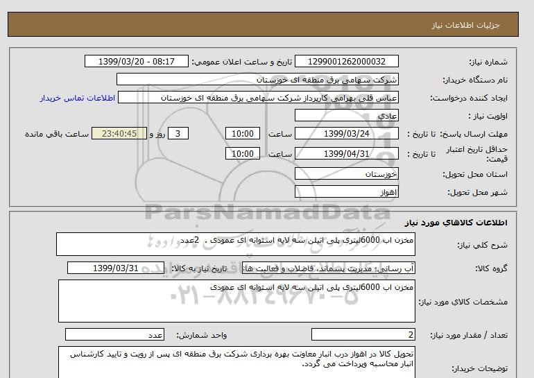 نام دستگاه خریدار:شرکت سهامی برق منطقه ای خوزستان