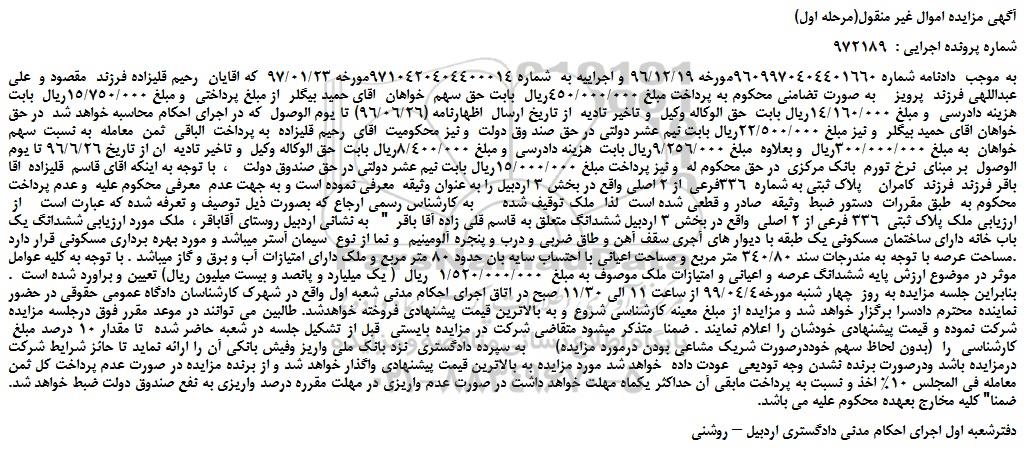 آگهی مزایده اموال غیر منقول(مرحله اول)