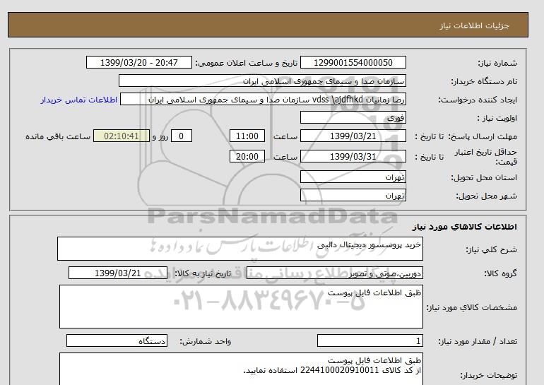 نام دستگاه خریدار:سازمان صدا و سیمای جمهوری اسلامی ایران