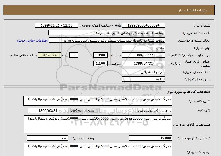 نام دستگاه خریدار:بیمارستان شهید دکتر بهشتی شهرستان مراغه
