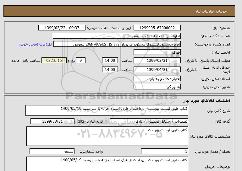 نام دستگاه خریدار:اداره کل کتابخانه های عمومی