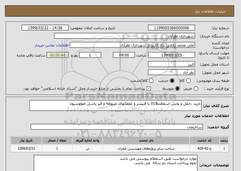 شرح کلی نیاز: خرید ،حمل و پخش اسفالت019 با فنیشر و غلطکهای مربوطه و قیر پاشی امولوسیون