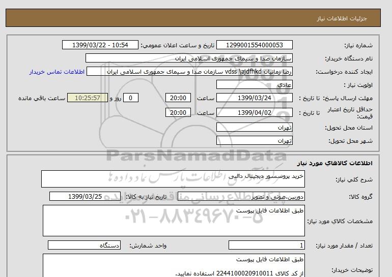 نام دستگاه خریدار:سازمان صدا و سیمای جمهوری اسلامی ایران