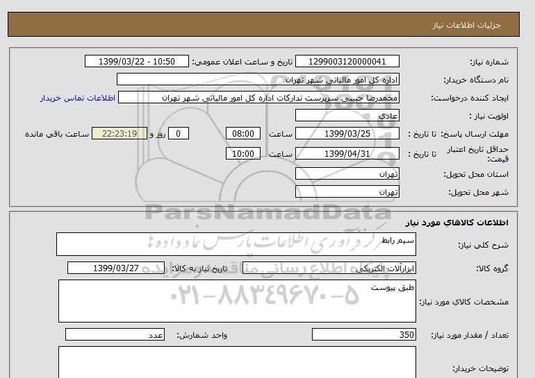 نام دستگاه خریدار:اداره کل امور مالیاتی شهر تهران
