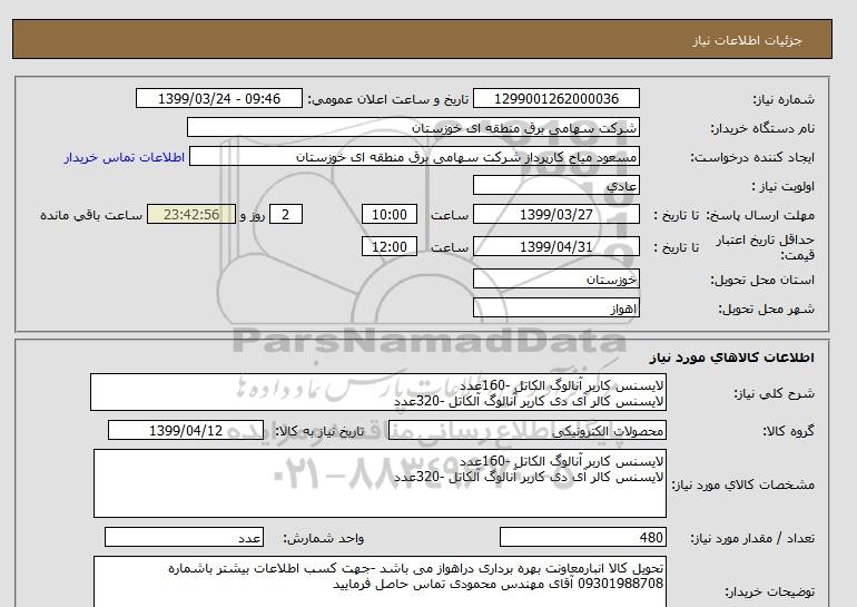 نام دستگاه خریدار:شرکت سهامی برق منطقه ای خوزستان