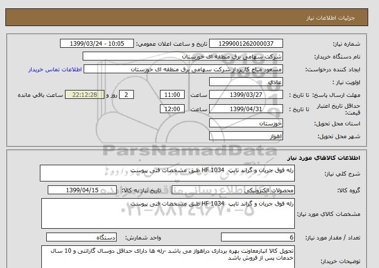 شرح کلی نیاز: رله فوق جریان و گراند تایپ HF 1034 طبق مشخصات فنی پیوست