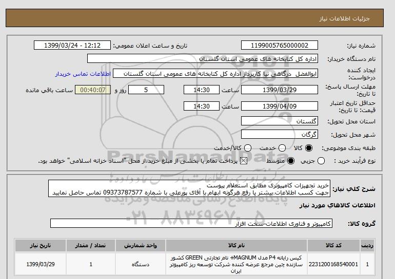نام دستگاه خریدار:اداره کل کتابخانه های عمومی استان گلستان