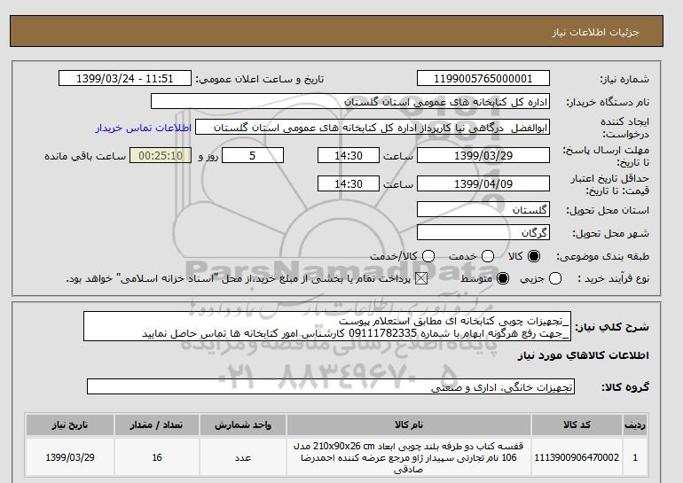 نام دستگاه خریدار:اداره کل کتابخانه های عمومی استان گلستان