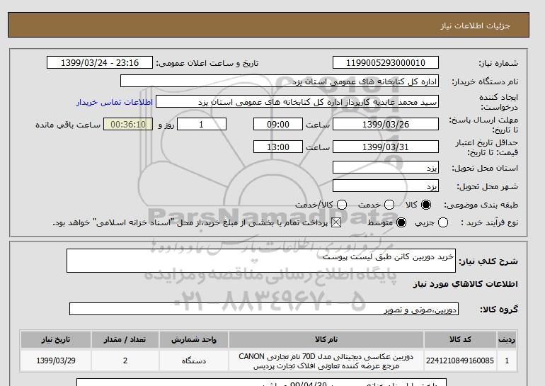 استعلام خرید دوربین کانن طبق لیست پیوست , استعلام خرید دوربین کانن طبق لیست پیوست
