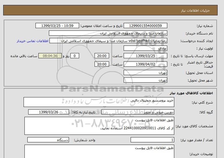 نام دستگاه خریدار:سازمان صدا و سیمای جمهوری اسلامی ایران
