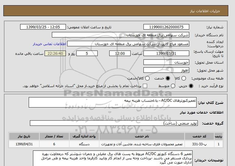 شرح کلی نیاز: تعمیرکنورترهای AC/DC - با احتساب هزینه بیمه