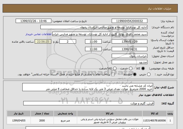 نام دستگاه خریدار:اداره کل نوسازی، توسعه و تجهیز مدارس خراسان رضوی