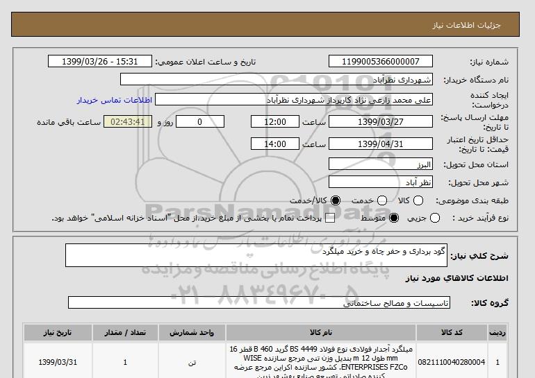 شرح کلی نیاز: گود برداری و حفر چاه و خرید میلگرد