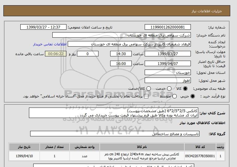 نام دستگاه خریدار:شرکت سهامی برق منطقه ای خوزستان
