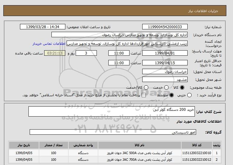شرح کلی نیاز: خرید 200 دستگاه کولر آبی