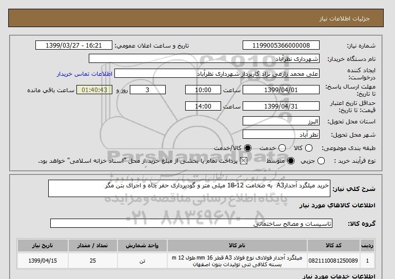 نام دستگاه خریدار:شهرداری نظرآباد