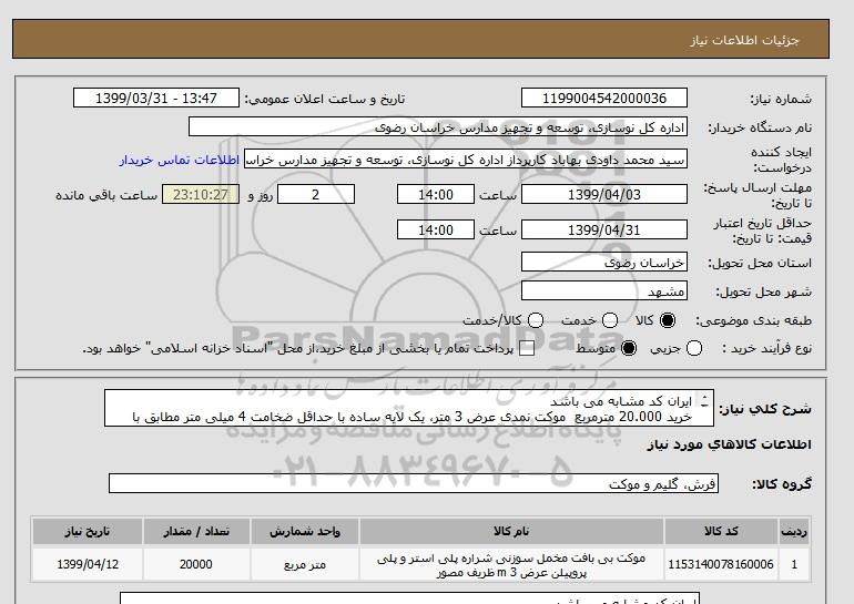 نام دستگاه خریدار:اداره کل نوسازی، توسعه و تجهیز مدارس خراسان رضوی