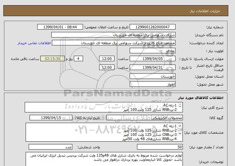 توضیحات خریدارلوازم درخواست شده مربوط به باتری شارژر های 48و125 ولت شرکت پردیس تبدیل انرژی ایرانیان می باشد -تحویل کالا انبارمعاونت بهره برداری دراهواز می باشد