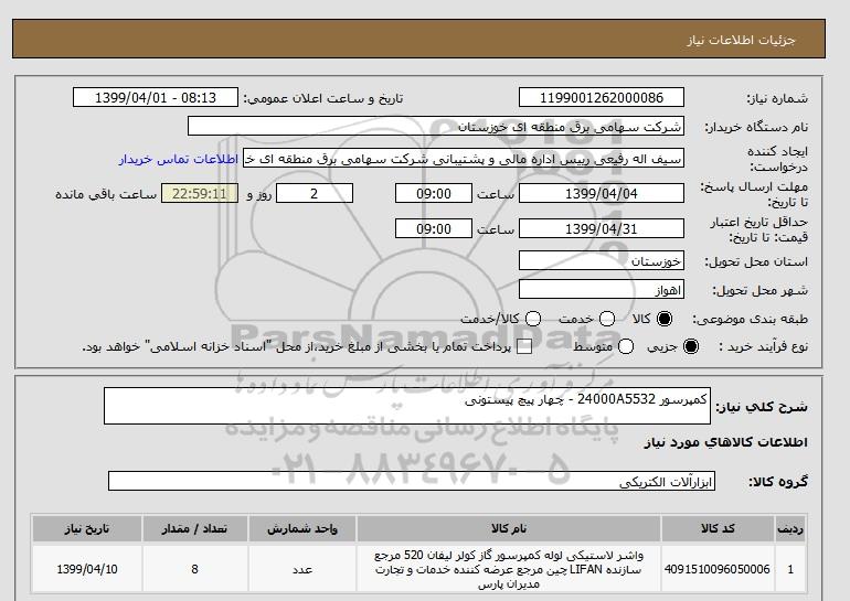 نام دستگاه خریدار:شرکت سهامی برق منطقه ای خوزستان
