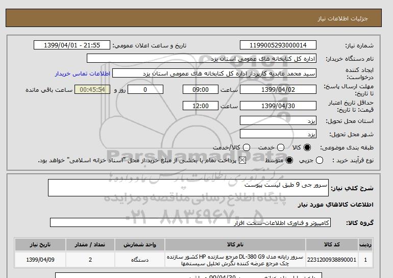 شرح کلی نیاز: سرور جی 9 طبق لیست پیوست