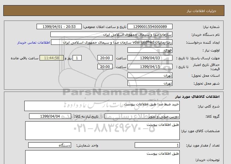 نام دستگاه خریدار:سازمان صدا و سیمای جمهوری اسلامی ایران