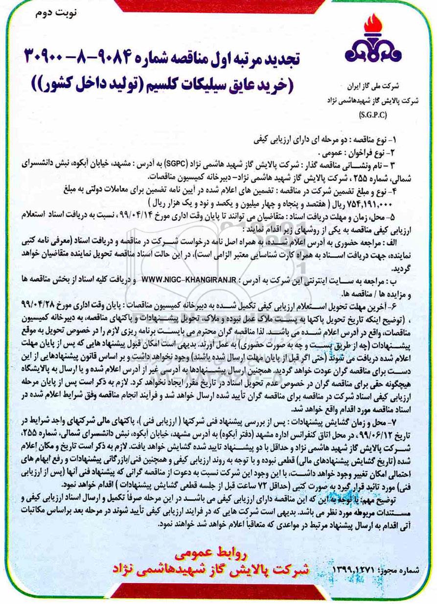 3. نام و نشانی مناقصه گزار: شرکت پالایش گاز شهید هاشمی نژاد (SGPC) به آدرس: مشهد، خیابان آّبکوه، نبش دانشسرای شمالی، شماره 255، شرکت پالایش گاز شهید هاشمی نژاد، دبیرخانه کمیسیون مناقصات