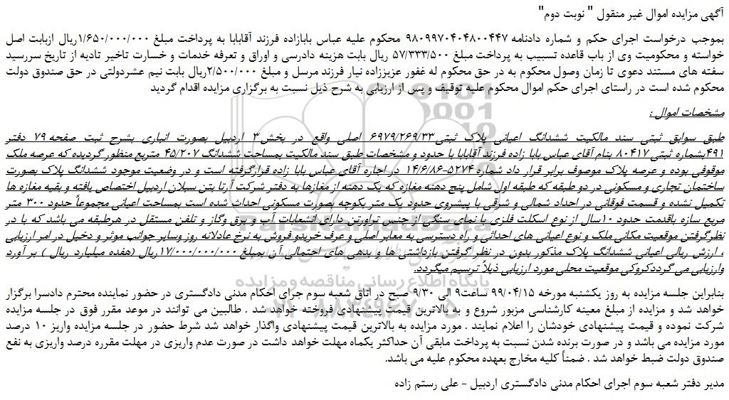 "آگهی مزایده اموال غیر منقول " نوبت دوم
