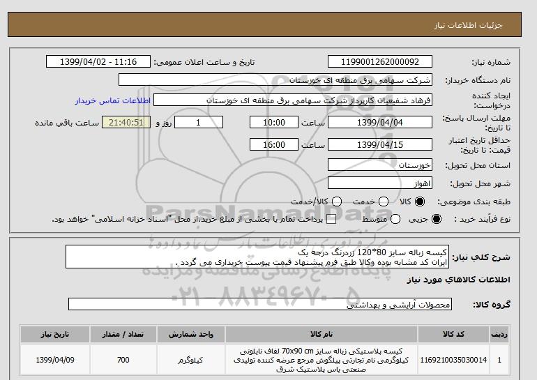نام دستگاه خریدار:شرکت سهامی برق منطقه ای خوزستان