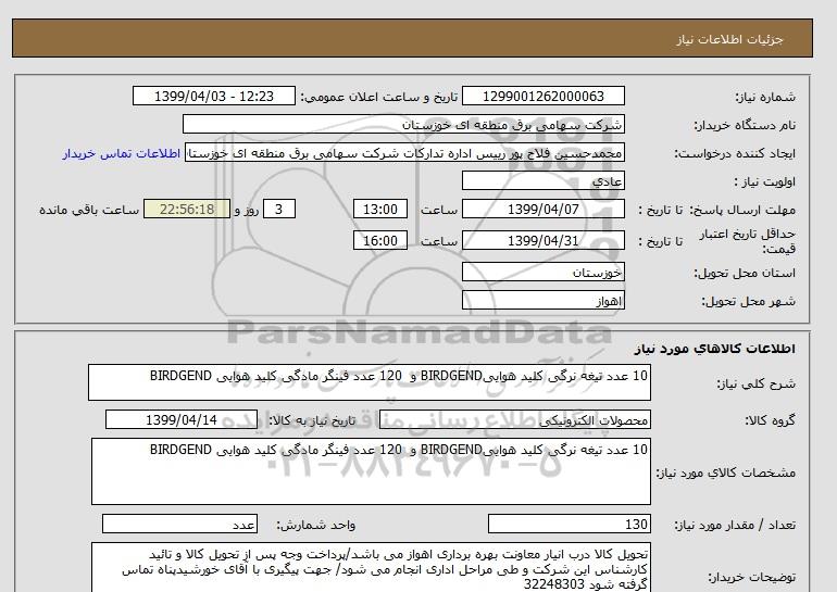 نام دستگاه خریدار:شرکت سهامی برق منطقه ای خوزستان