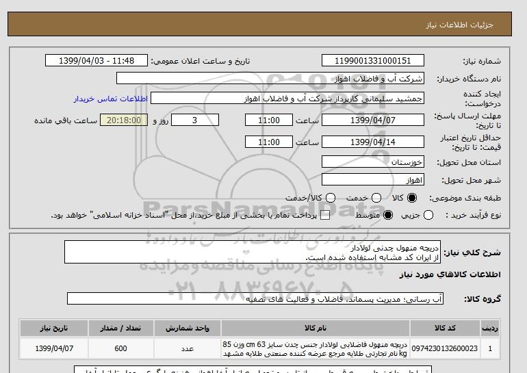 نام دستگاه خریدار:شرکت آب و فاضلاب اهواز