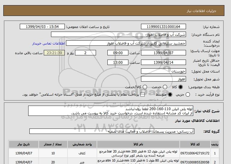 نام دستگاه خریدار:شرکت آب و فاضلاب اهواز