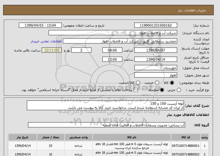 نام دستگاه خریدار:شرکت آب و فاضلاب اهواز