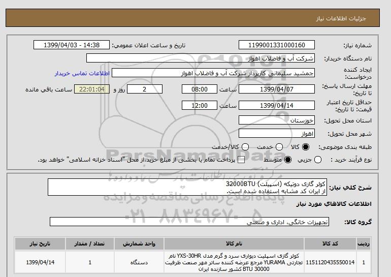 شرح کلی نیاز: کولر گازی دوتیکه (اسپیلت) 32000BTU